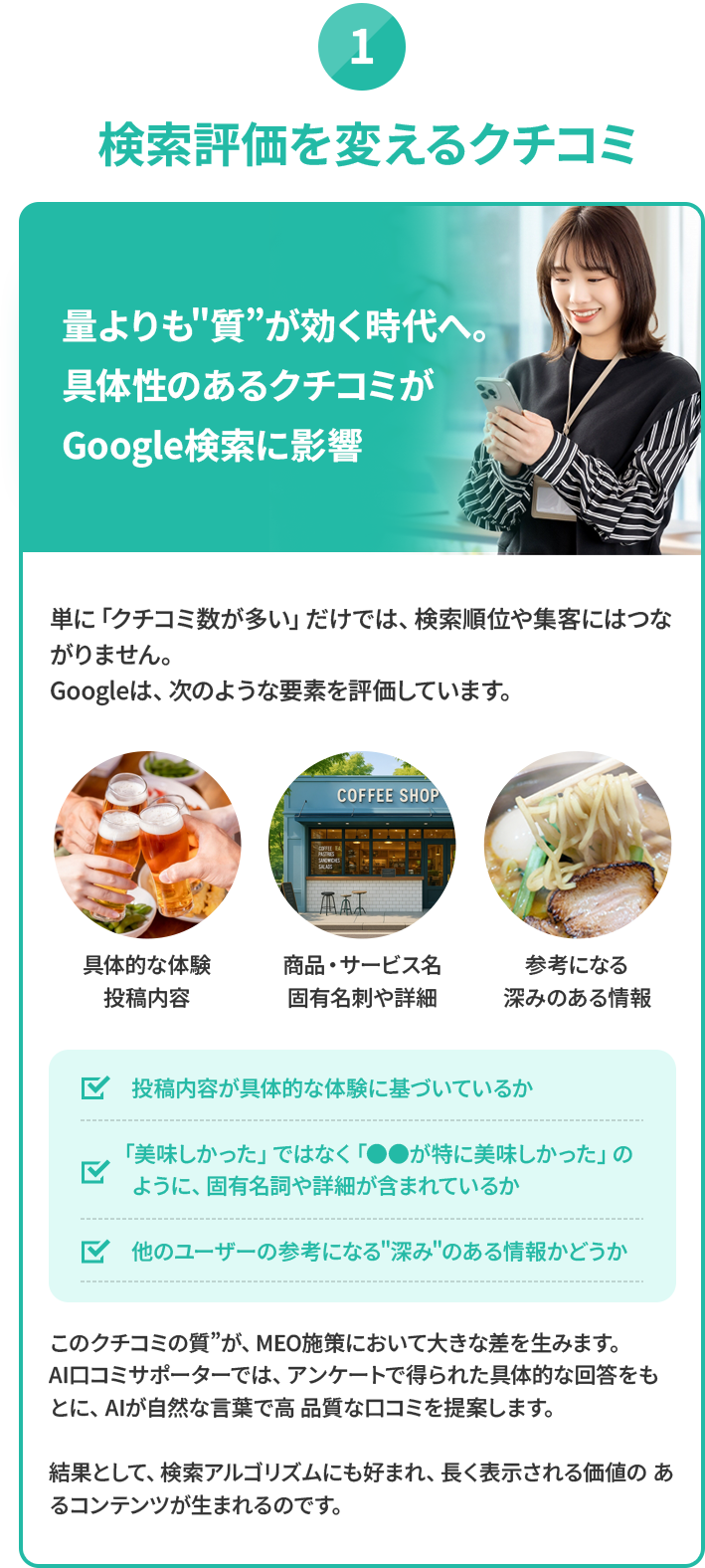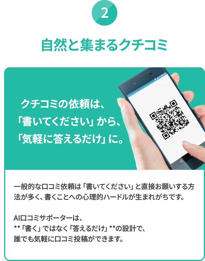 - ② アンケートを元にAIが自然なクチコミ文章を作成。