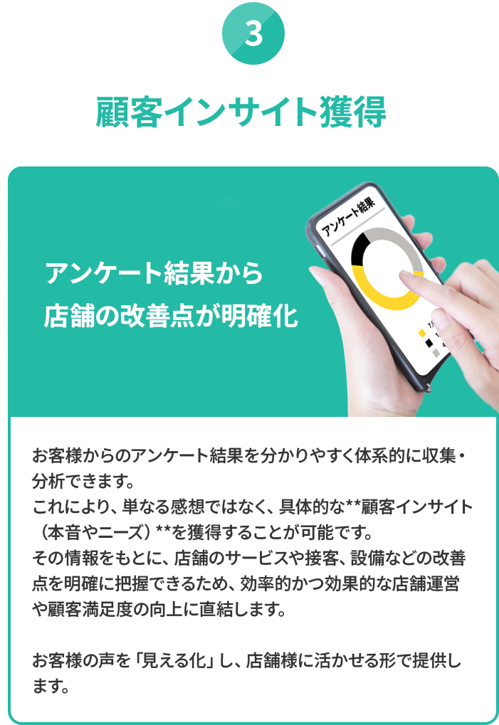 ・偏りのない自然な口コミを実現するため、バランスの取れた質問設計を徹底しています