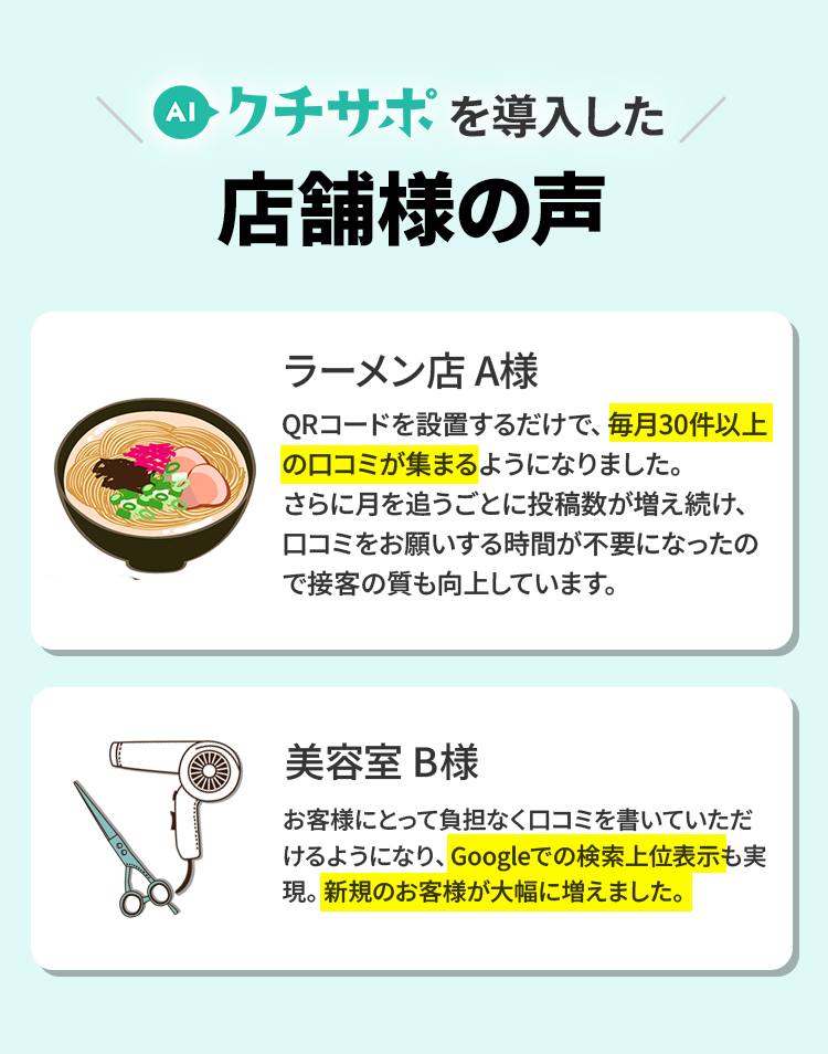 ・口コミの内容はお客様の回答から生成され、事業者が操作できない